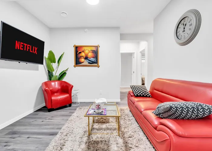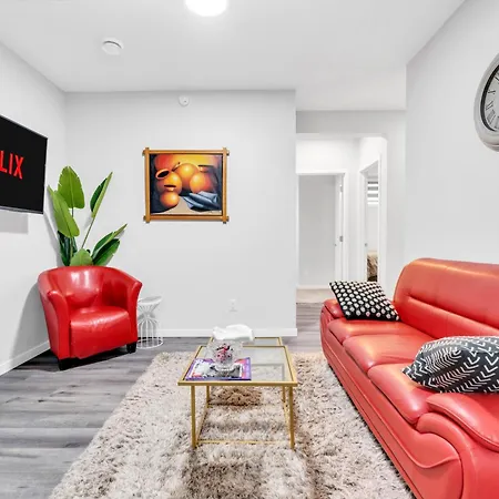 Private, Stylish And Peaceful 2Br Guest Suite offers guests the convenient feature of a dryer and towels in the bathroom. Additionally, you'll find a separate toilet and a shower.
